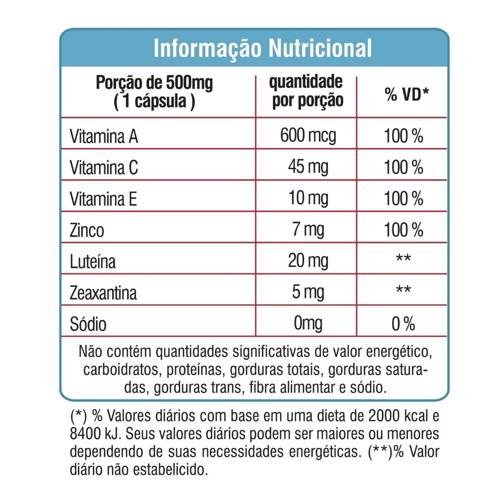 Luteína con Zeaxantina, que además incluye Vitaminas A, C, E y Zinc. Esta combinación de ingredientes es ideal no solo para proteger la visión, sino también para fortalecer la salud en general gracias a las propiedades antioxidantes y el apoyo al sistema inmunológico.